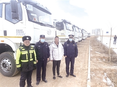 12月14日,阿拉善右旗公安局查干通格公安檢查站民警在戈壁路上,查處偽造超限運(yùn)輸車輛通行證的重型貨車17臺(tái)。