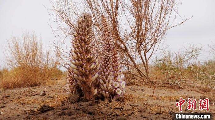 圖為梭梭林下種植的肉蓯蓉開(kāi)花。敖琪 攝