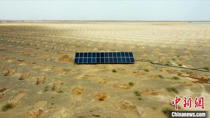 圖為梭梭林地利用光伏發(fā)電板發(fā)電。敖琪 攝