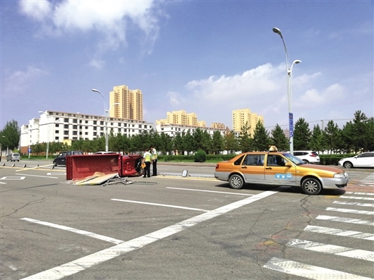 出租車駕駛員弓先生告訴記者:“當(dāng)時我駕車從北向南行駛,車上有一名乘客坐在副駕駛位置,正在此處停車等待掉頭時,后面的三輪車撞了上來,當(dāng)時撞擊的力度很大,把我的車撞出了線,三輪車側(cè)翻也撞倒了護欄。”弓先生說事故發(fā)生后乘客自行離開。三輪摩托車駕駛員姜先生身上多處擦傷,他說當(dāng)時車上只有他一人,也是北向南行駛。姜先生說:“車上拉載的都是裝修用具和材料,事故發(fā)生時有些蒙?!?/p>