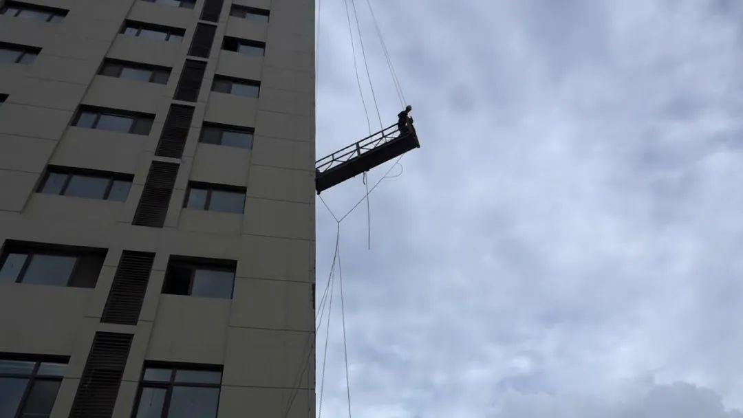 9月1日17時許,包頭市各地出現(xiàn)冰雹、雷雨大風(fēng)等強(qiáng)對流天氣,冰雹平均直徑5毫米,最大直徑10毫米。在這樣惡劣的天氣條件下,一名粉刷工人被困在包頭市富力城公寓8樓外的吊籃中,情況危急。