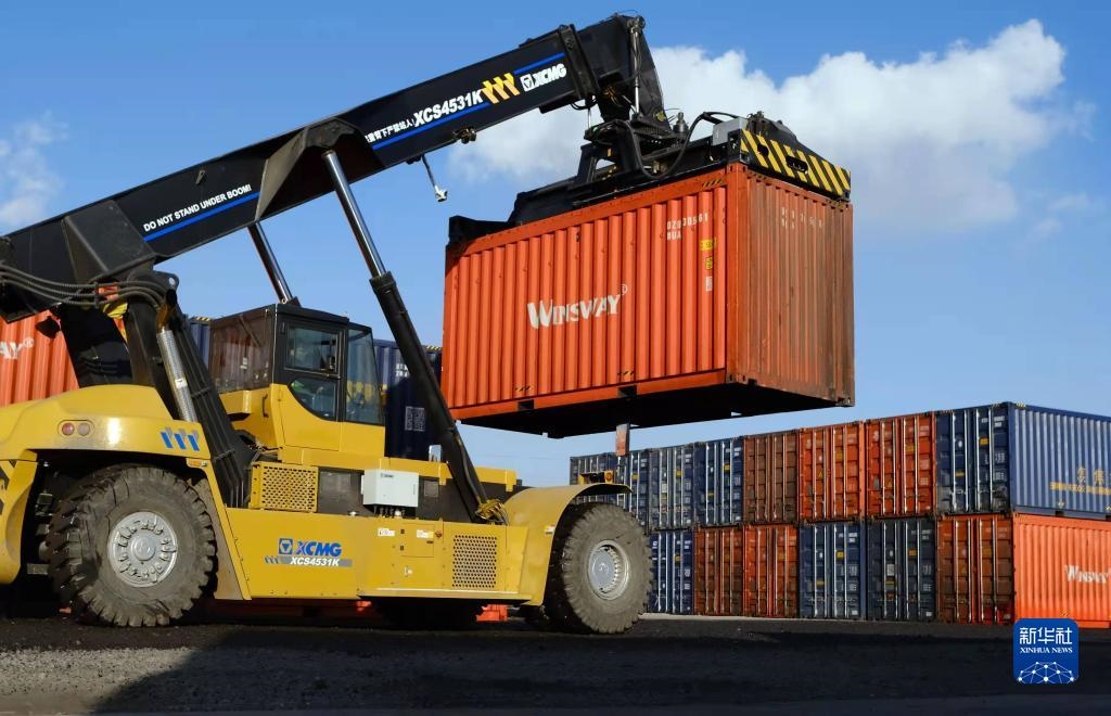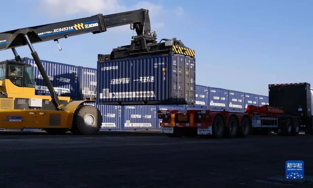 這是內(nèi)蒙古自治區(qū)包頭市九原區(qū)新近建成的“數(shù)字陸港”的作業(yè)場景。