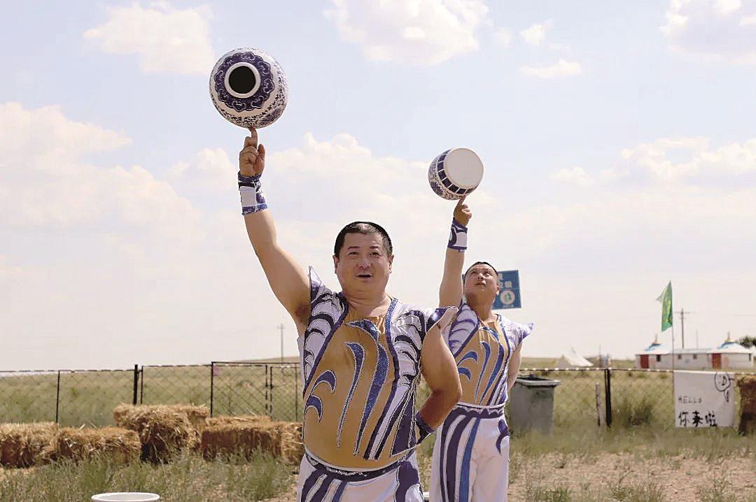 今年6月,北疆文化活動季——第二屆“中國雜技北疆行”系列活動走進達茂旗,將雜技舞臺搭建在草原深處,為達茂旗各族群眾獻上了一場精彩絕倫的藝術盛宴,在祖國北疆點燃了文化交融的璀璨燈火。來自全國多地頂尖院團的演員們不懼炎炎烈日,頂著30攝氏度的高溫一絲不茍地完成著演出。草場上,聞訊趕來的牧民們圍坐在一起,目不轉(zhuǎn)睛地欣賞著表演。當青花瓷壇在演員頸肩翻飛、靛藍花紋映著綠野藍天劃出驚險弧線,引發(fā)現(xiàn)場掌聲、歡呼聲不斷。