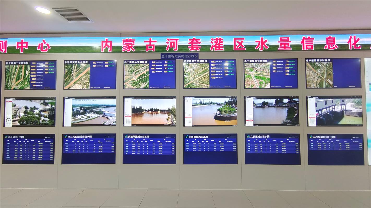河套灌區(qū)水量信息化監(jiān)測(cè)中心數(shù)字墻。