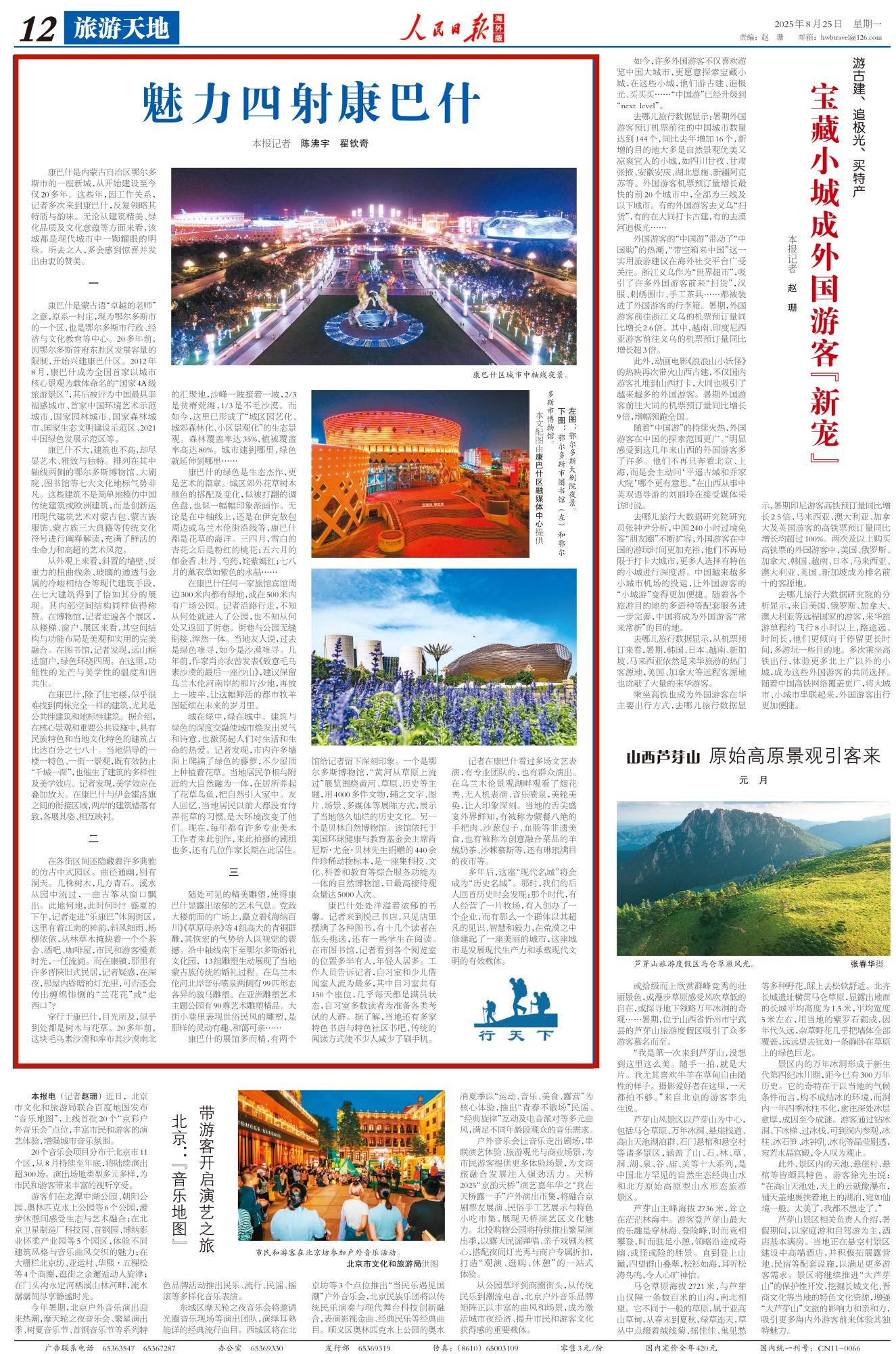 2025年8月25日,《人民日?qǐng)?bào)海外版》第12版刊發(fā)題為《魅力四射康巴什》的文章,報(bào)道了因工作關(guān)系,記者多次來(lái)到康巴什,反復(fù)領(lǐng)略其特質(zhì)與韻味。無(wú)論從建筑精美、綠化品質(zhì)及文化意蘊(yùn)等方面來(lái)看,該城都是現(xiàn)代城市中一顆耀眼的明珠。所去之人,多會(huì)感到驚喜并發(fā)出由衷的贊美。