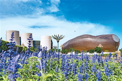 從外觀上來(lái)看,斜置的墻壁、反重力的扭曲線條、玻璃的通透與金屬的冷峻相結(jié)合等現(xiàn)代建筑手段,在七大建筑得到了恰如其分的展現(xiàn)。其內(nèi)部空間結(jié)構(gòu)同樣值得稱贊。在博物館,記者走遍各個(gè)展區(qū),從樓梯、窗戶、展區(qū)來(lái)看,其空間結(jié)構(gòu)與功能布局是美觀和實(shí)用的完美融合。在圖書(shū)館,記者發(fā)現(xiàn),遠(yuǎn)山框進(jìn)窗戶,綠色環(huán)繞四周。在這里,功能性的光芒與美學(xué)性的溫度和諧共生。