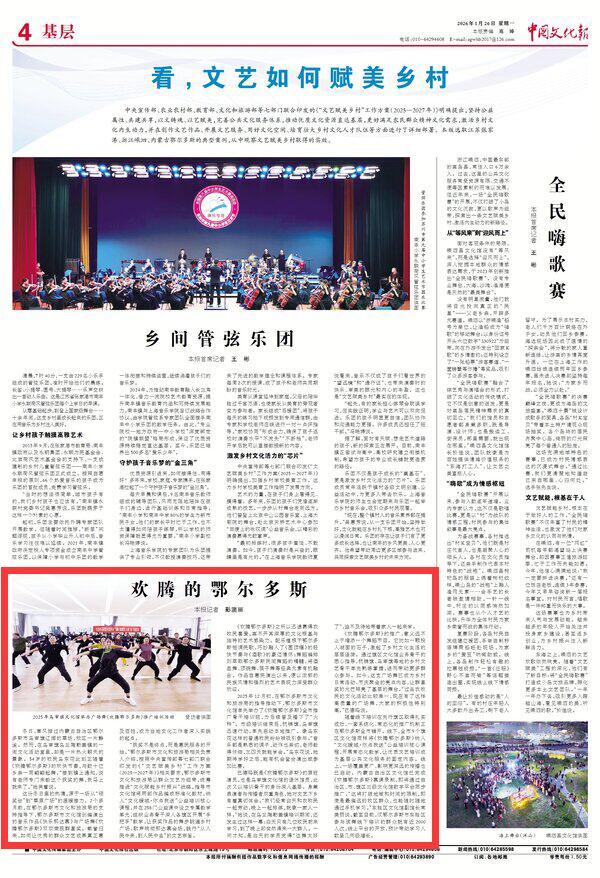 2026年1月26日《中國文化報(bào)》第4版刊發(fā)了《歡騰的鄂爾多斯》的文章,報(bào)道了廣場舞《歡騰鄂爾多斯》已成為鄉(xiāng)村日?;顒?dòng)、節(jié)慶聚會(huì)的亮點(diǎn)內(nèi)容,讓群星獎(jiǎng)的光芒照亮了基層的舞臺(tái)。作品自惠民演出以來,便以濃郁的民族風(fēng)情和強(qiáng)烈的藝術(shù)表現(xiàn)力深受群眾歡迎。