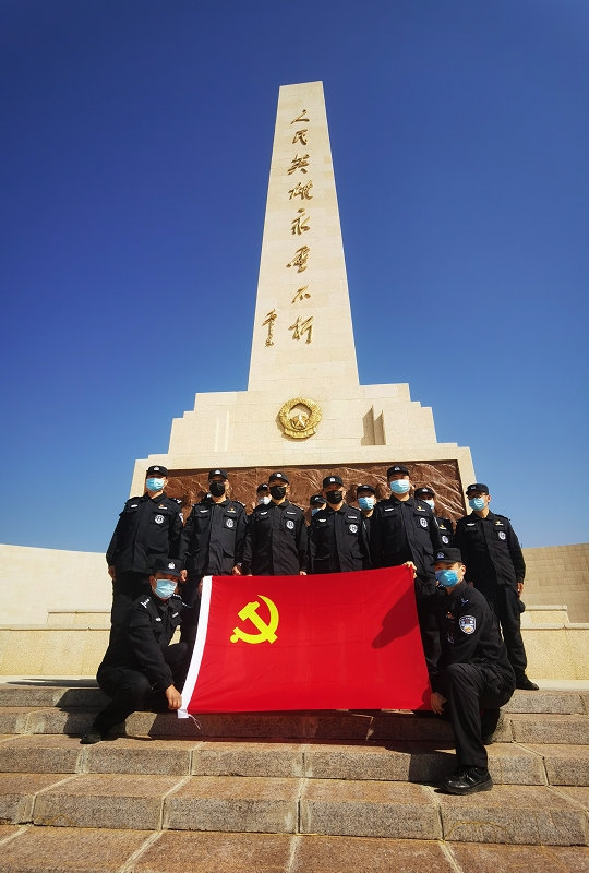 在紀(jì)念碑前,隊(duì)員們面對鮮紅的黨旗,高舉右手莊嚴(yán)宣誓。通過重溫入黨誓詞,進(jìn)一步增強(qiáng)了黨員民警輔警的使命感、責(zé)任感和榮譽(yù)感,表達(dá)了對黨、對人民的無限忠誠和堅(jiān)定信念。