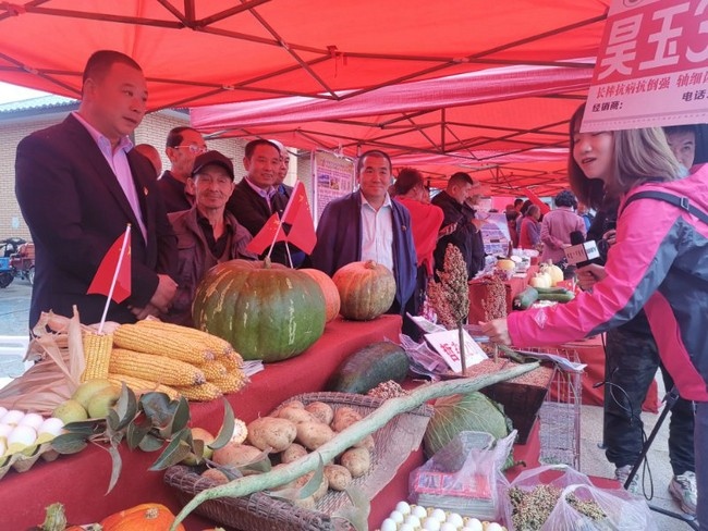 9月23日,正值巴彥街道第二屆“中國農(nóng)民豐收節(jié)”慶?;顒?,呼和浩特市賽罕區(qū)委網(wǎng)信辦再次組織網(wǎng)絡(luò)媒體走進鄉(xiāng)村,感受豐收的喜慶。村民們敲鑼打鼓,用歌聲和舞姿慶祝豐收,12個村的16個品種的農(nóng)產(chǎn)品在郭家營村集中展示,無論是蔬菜瓜果,還是高粱玉米……滿眼都是碩果累累、豐收景象,1.8米長的“蛇豆角”更讓人眼前一亮,頗感驚奇。