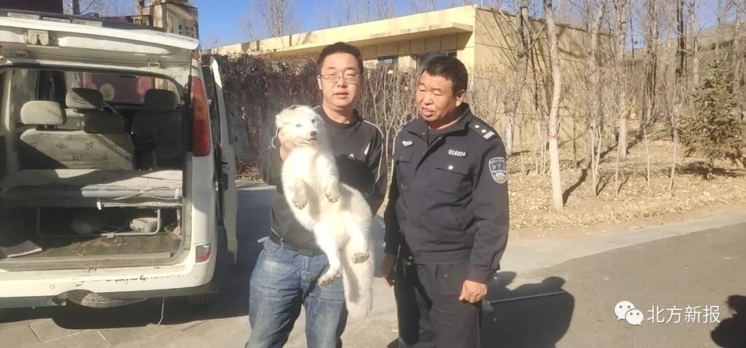 民警將白狐送往呼和浩特市野生動(dòng)物救助中心救治