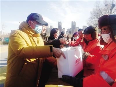 裴永志告訴呼和浩特晚報(bào)記者:“我們夫妻經(jīng)營(yíng)著一家民營(yíng)企業(yè),2017年冬季的一天,我出差辦事,當(dāng)天早上7點(diǎn)多就趕到了機(jī)場(chǎng),天氣非常寒冷。到了機(jī)場(chǎng),看到有幾名環(huán)衛(wèi)工人正在打掃路邊的衛(wèi)生,其中一名年齡較大的環(huán)衛(wèi)工人摘下手套拾撿路邊的煙頭等垃圾。我當(dāng)時(shí)非常感動(dòng),覺(jué)得環(huán)衛(wèi)工人平凡而又偉大,于是,就想著為他們做點(diǎn)什么。出差回來(lái)后,我把想法告訴了妻子,沒(méi)想到妻子也非常支持,最終,我們決定為環(huán)衛(wèi)工人捐贈(zèng)棉衣。之后便與賽罕區(qū)環(huán)衛(wèi)局的工作人員進(jìn)行對(duì)接。當(dāng)年,我們自籌了15萬(wàn)元,購(gòu)買了206件棉衣,捐贈(zèng)給了環(huán)衛(wèi)工人?!?/p>