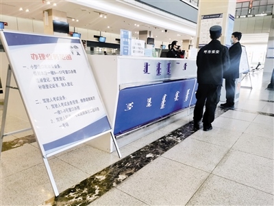 “你好!違章查詢(xún)和罰款繳納需要去交管隊(duì),不在這里辦理。如果是本人車(chē)輛,也可下載12123 APP進(jìn)行辦理?!?月18日9時(shí)10分,記者走進(jìn)呼和浩特市交警支隊(duì)車(chē)輛管理所,在政務(wù)服務(wù)中心東大廳正對(duì)著大門(mén)的導(dǎo)辦臺(tái),一位民警正在接受市民業(yè)務(wù)咨詢(xún)。記者看到,大廳里往日喧囂熱鬧的場(chǎng)景不見(jiàn)了,只有零星幾位市民在辦理業(yè)務(wù)。