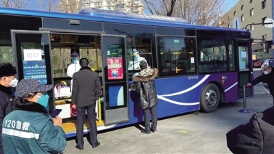 2月28日上午,在呼和浩特市新華大街附近,一輛敞開了玻璃窗的公交車??吭诘缆放?,居民們按照規(guī)定間隔排隊,依次來到公交車前進(jìn)行核酸采樣,醫(yī)務(wù)人員坐在車廂座椅有序地為市民進(jìn)行核酸采樣,受檢人員不用上車,站在窗外,采完即走。