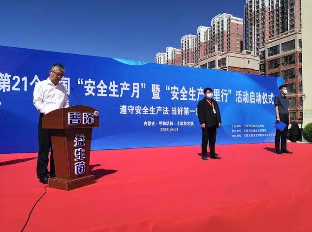 當(dāng)好第一責(zé)任人”為主題的土左旗2022年“安全生產(chǎn)月”暨“安全生產(chǎn)萬里行”活動啟動儀式,在普澤生物舉行?,F(xiàn)場,40個(gè)旗直單位和12家企業(yè)的代表參加了啟動儀式。