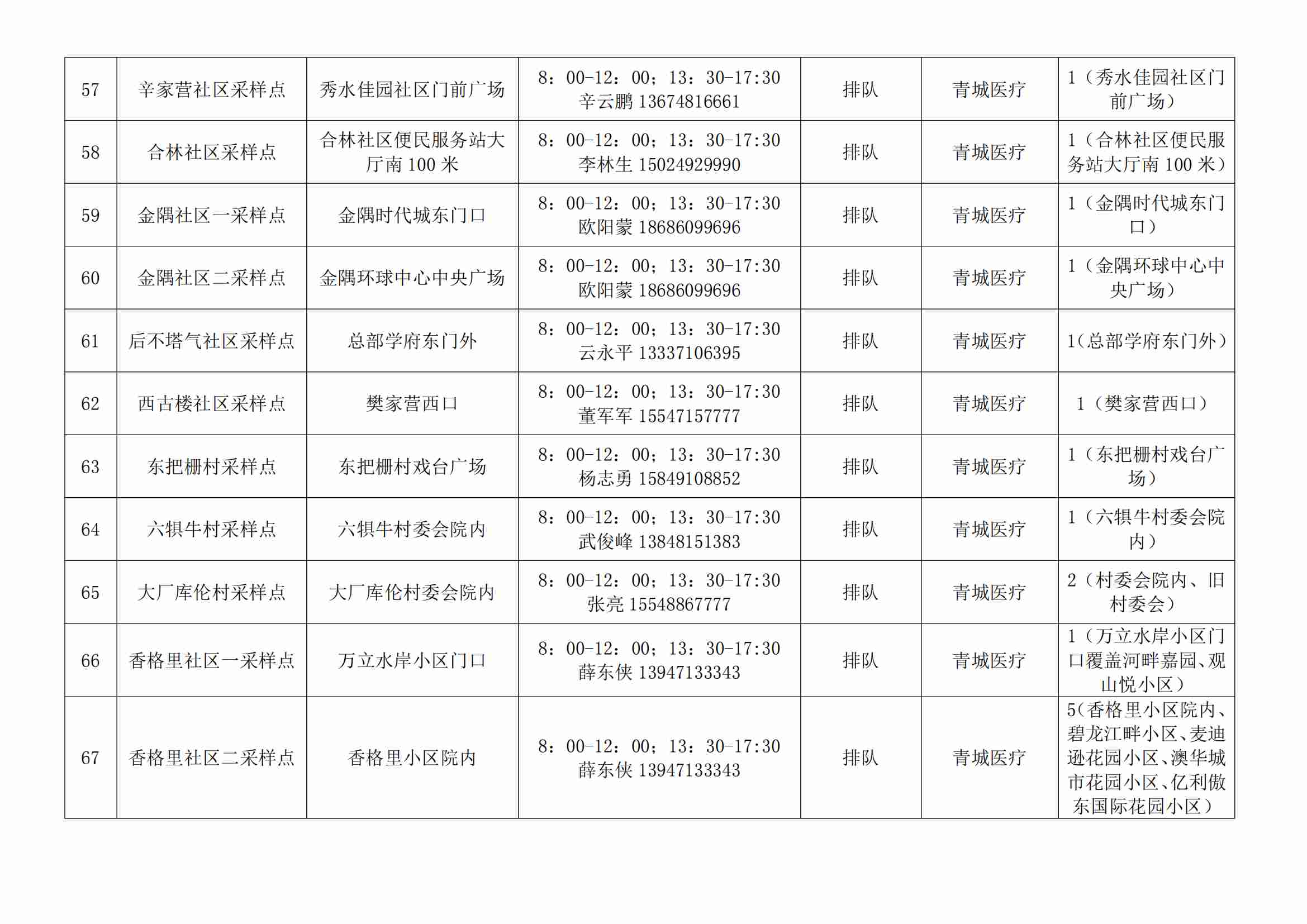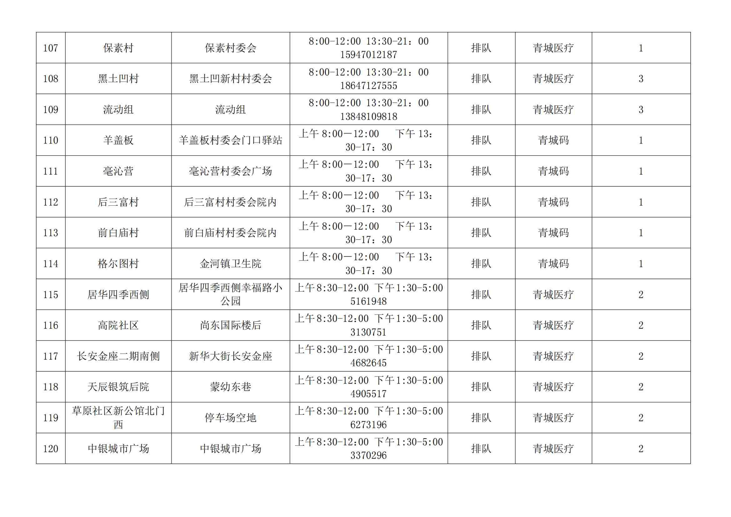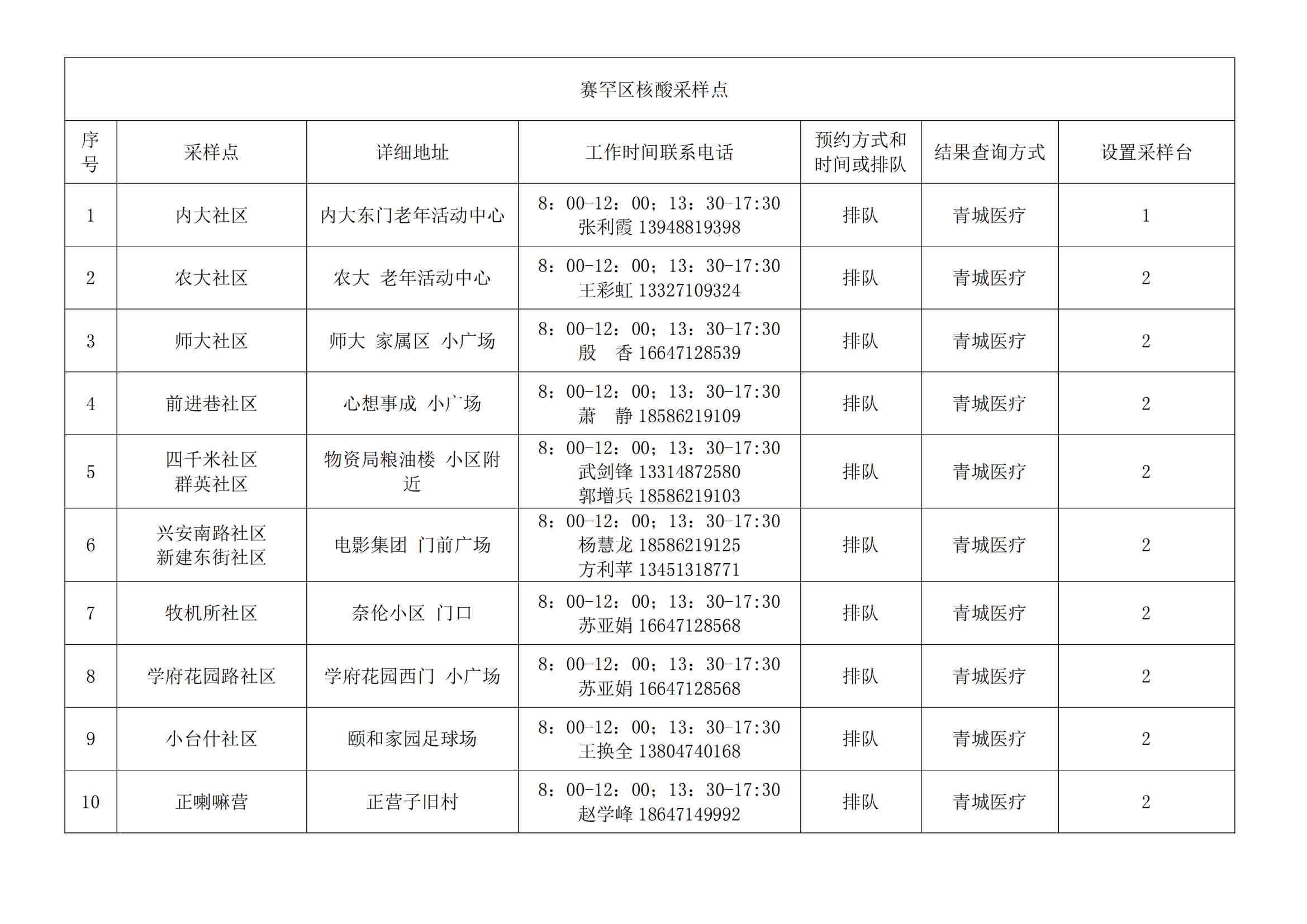 根據(jù)全市核酸檢測政策的調(diào)整,為滿足市民就醫(yī)、出行、工作等核酸檢測需求,賽罕區(qū)開放160個便民核酸采樣點(詳見附表),廣大市民可就近選擇,核酸結(jié)果從青城碼查詢。