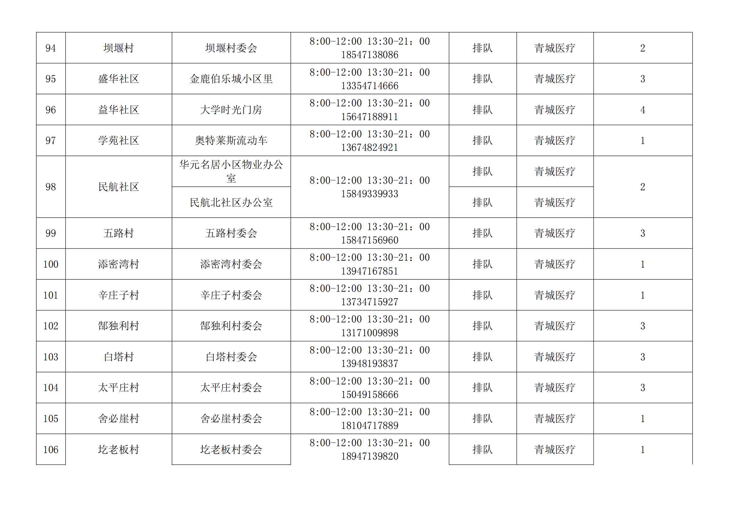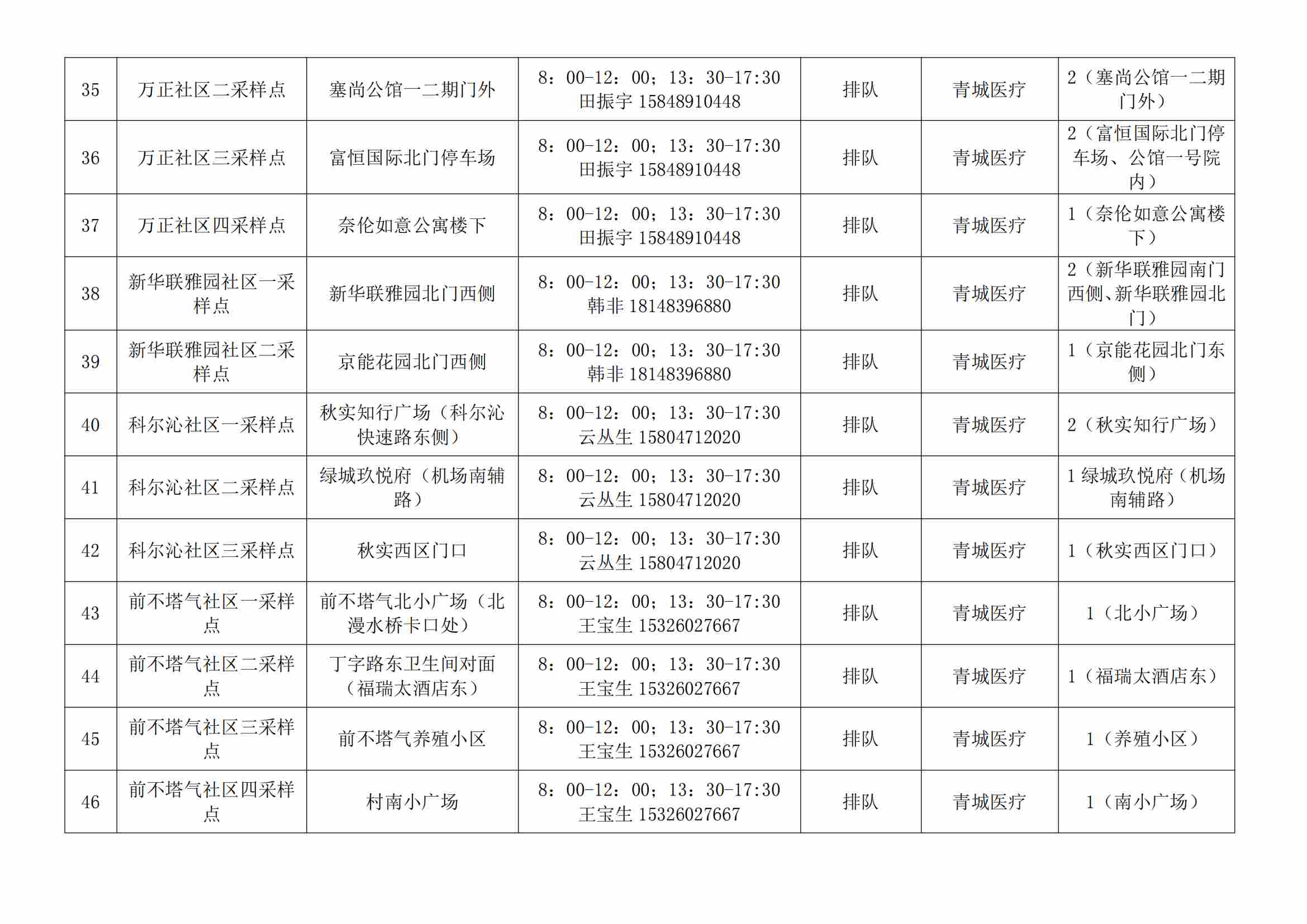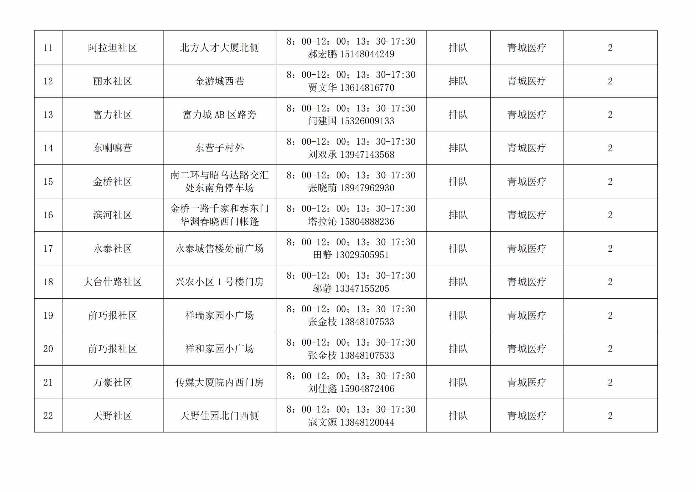 根據(jù)全市核酸檢測政策的調(diào)整,為滿足市民就醫(yī)、出行、工作等核酸檢測需求,賽罕區(qū)開放160個便民核酸采樣點(詳見附表),廣大市民可就近選擇,核酸結(jié)果從青城碼查詢。