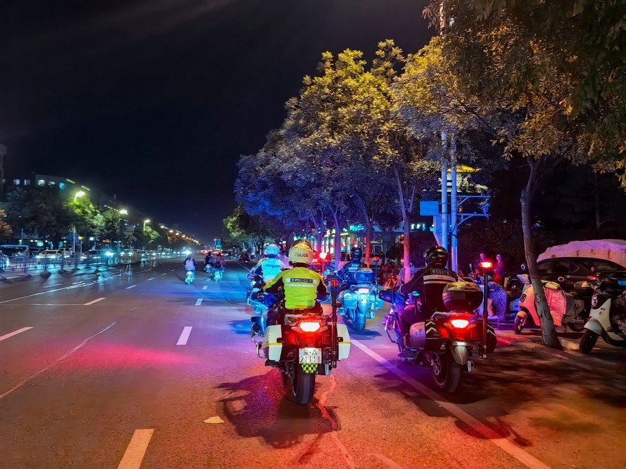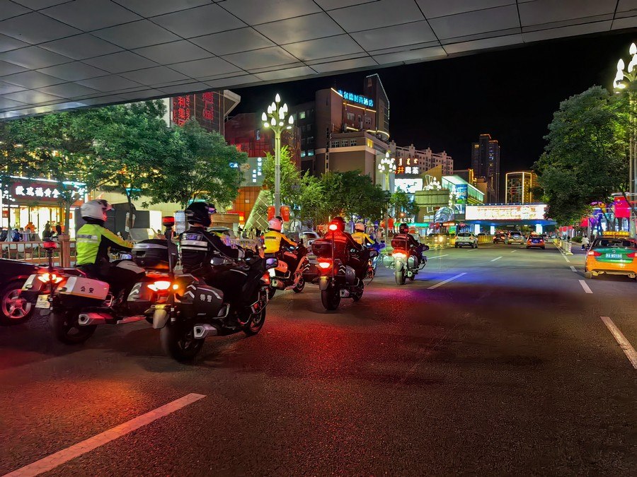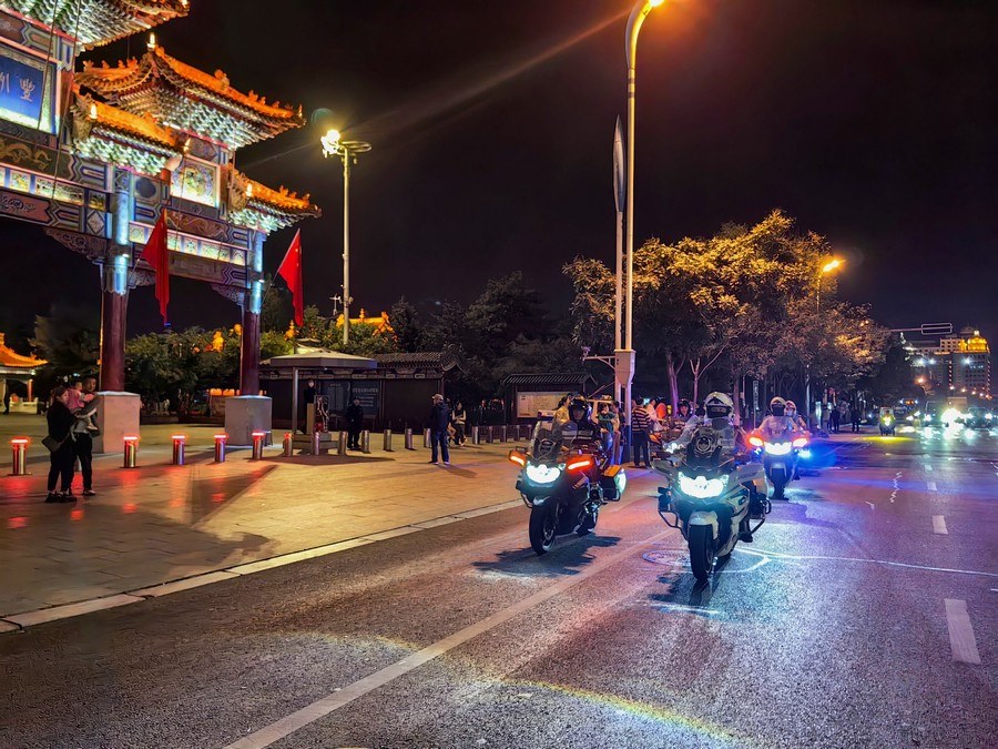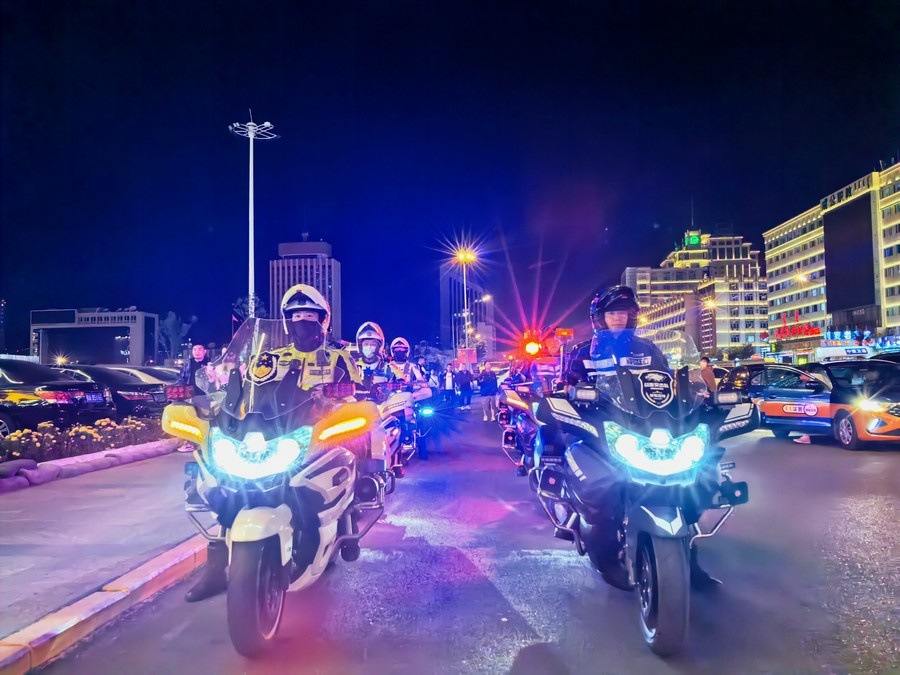 中秋、國慶兩節(jié)期間,呼和浩特市公安局反恐怖和特巡警支隊?wèi)?zhàn)鷹突擊隊與交警支隊停放管理大隊鐵騎中隊,聯(lián)合開展巡邏防控工作,并組成了一支騎警處突機(jī)動隊,成了呼和浩特大街小巷一道亮麗的風(fēng)景線。圖為中秋節(jié)之夜,這支機(jī)動隊開展聯(lián)合巡邏,守護(hù)青城百姓平安過節(jié)。 王鑫 攝影報道