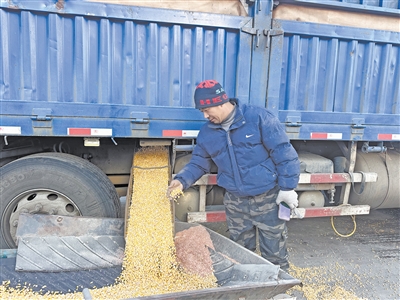 農(nóng)民正在卸糧