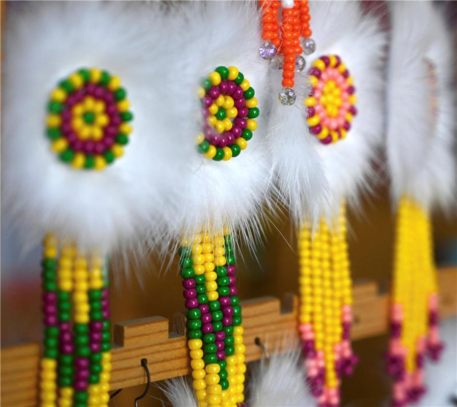 近日,在呼倫貝爾市鄂溫克族自治旗民族文化產(chǎn)業(yè)創(chuàng)業(yè)園的一家手工藝品店,工作人員正在制作“太陽(yáng)花”。