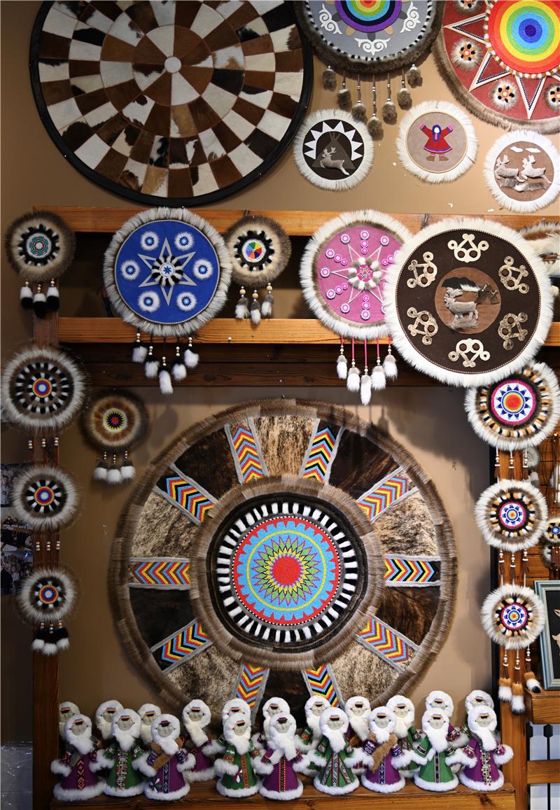 “太陽(yáng)花”是鄂溫克族傳統(tǒng)手工藝品,圓心象征著太陽(yáng),四周毛針象征著陽(yáng)光,寓意著溫暖、吉祥。如今,“太陽(yáng)花”已經(jīng)成為鄂溫克族自治旗暢銷的文創(chuàng)產(chǎn)品,帶動(dòng)當(dāng)?shù)責(zé)釔蹅鹘y(tǒng)手工藝品制作的人們共同走上致富路。