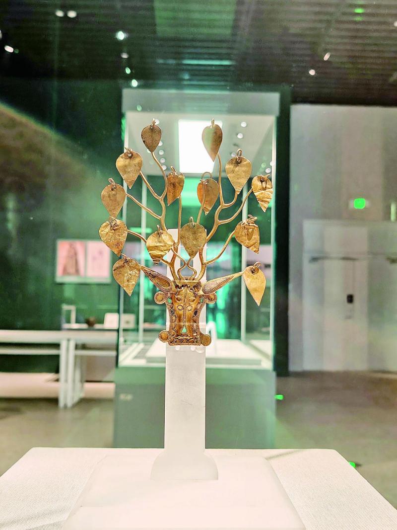 展覽中,呼倫貝爾的嘎仙洞遺址出土的石鏃、骨錐等,見證了拓跋鮮卑早期的生活遺跡;內(nèi)蒙古博物院藏的鹿角金步搖冠精美華麗,鹿頭面部鑲嵌有珠飾,鹿角支叉上所掛的桃形金葉均可搖動(dòng),象征著草原民族對(duì)于鹿的崇拜;釉陶馬、青釉武士俑,展示了拓跋鮮卑強(qiáng)大的騎兵力量;從大同出土的彩繪陶女舞俑到洛陽出土的彩繪陶伎樂俑,體現(xiàn)了北魏在漢化改革前后的服飾變化、音樂舞蹈和社會(huì)生活。