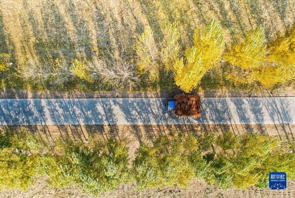 10月25日,在開魯縣東風(fēng)鎮(zhèn)東方紅村,村民運(yùn)輸收獲的紅干椒(無人機(jī)照片)。新華社記者 連振 攝