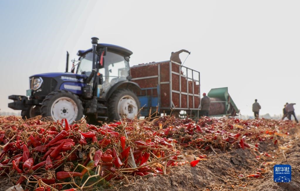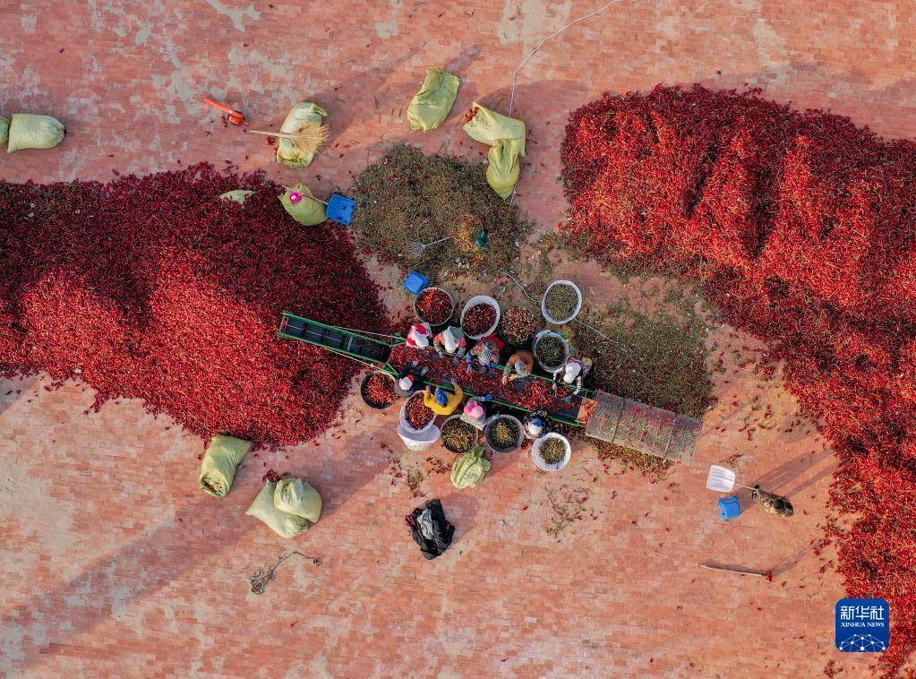 近日,內(nèi)蒙古通遼市開魯縣迎來紅干椒收獲銷售旺季。開魯縣紅干椒皮紅肉厚、品質(zhì)優(yōu)良,產(chǎn)品暢銷國內(nèi)外市場。近年來,開魯縣紅干椒種植面積穩(wěn)定在60萬畝。新華社記者 連振 攝