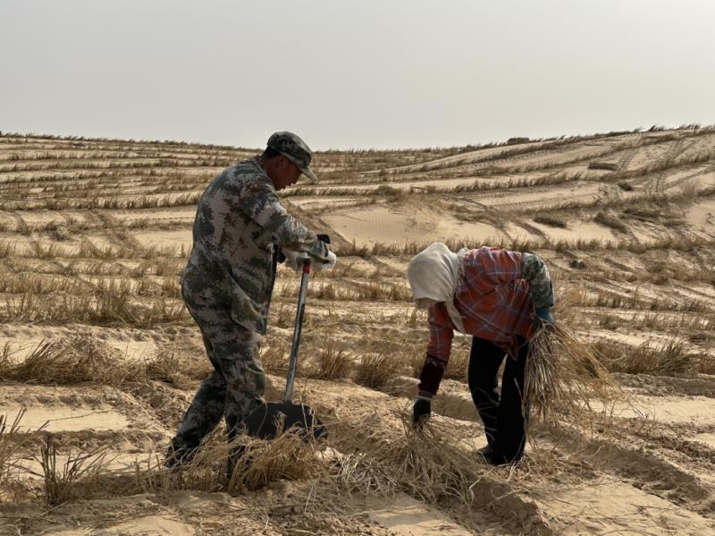 “三北”六期工程在葦蓮蘇鄉(xiāng)的實(shí)施面積達(dá)7.5萬畝,總投資4800萬元。葦蓮蘇鄉(xiāng)鄉(xiāng)長(zhǎng)李棟升在采訪中滿懷期待地表示:“這是葦蓮蘇鄉(xiāng)難得的發(fā)展機(jī)遇。風(fēng)沙減少了,生態(tài)環(huán)境更好了,‘以工代賑’讓鄉(xiāng)親們?cè)诩议T口就能就業(yè)增收,大家參與治理的積極性非常高。鄉(xiāng)政府將全力配合,確保項(xiàng)目順利完成,讓沙地早日披上綠裝。”來自興安莊村的村民曹金華同樣難掩喜悅:“在這里打工,既能為治沙出份力,又能在農(nóng)閑時(shí)賺錢,一天有300元收入,很滿足。”