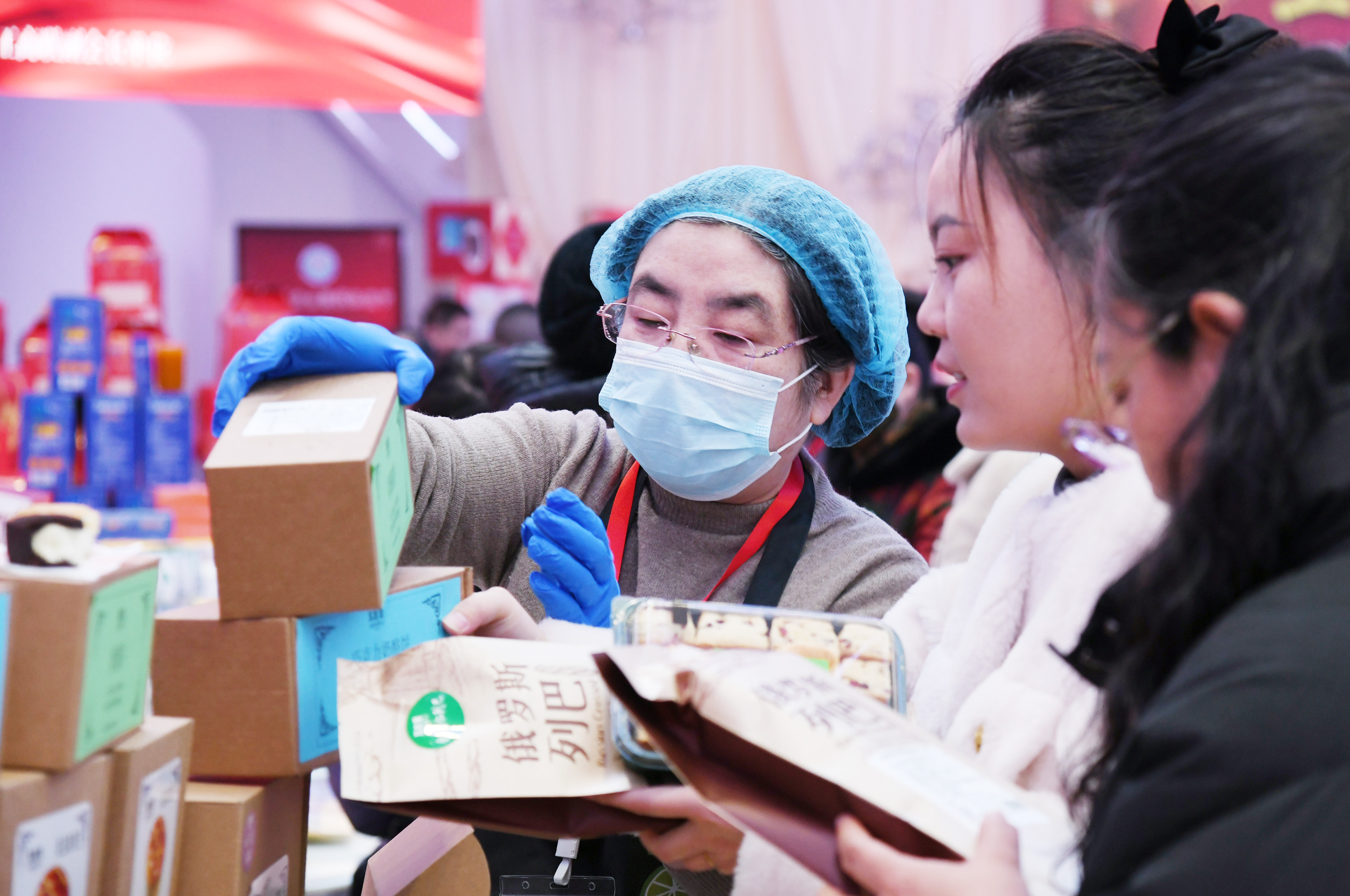 紅毯鋪地、燈籠高掛,熙熙攘攘的人群中,商家的吆喝聲此起彼伏。展位上,散發(fā)著誘人香氣的熟食禮盒、各式各樣的堅果奶食、豐富多樣的非遺制品……品類齊全的年貨商品整齊擺放。展位前,擠滿了購買年貨的顧客,大家走走停停、挑挑揀揀,認(rèn)真挑選著心儀的產(chǎn)品,感受著家門口濃濃的“年味”。