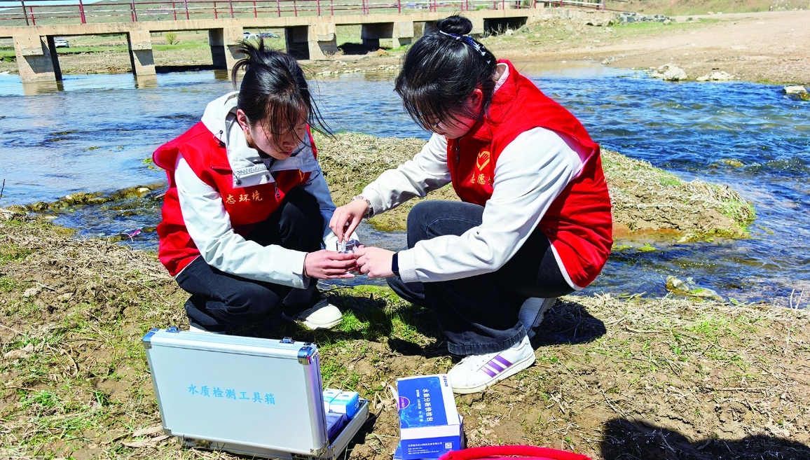 志愿者們用專業(yè)檢測(cè)設(shè)備開(kāi)展水質(zhì)檢測(cè)工作 馬佳敏 攝