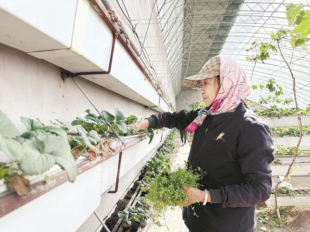 走進(jìn)草莓大棚內(nèi),濃濃的暖意撲面而來(lái)。抬眼望去,離地一米多的種植架上種滿了生機(jī)勃勃、長(zhǎng)勢(shì)喜人的草莓;穿梭在種植架間,一顆顆鮮紅欲滴、圓潤(rùn)飽滿的草莓宛如璀璨的紅寶石,從綠葉間“探出頭”來(lái),高高地懸掛在空中,散發(fā)著誘人的清香。種植戶牛尚海正在察看采用立體栽培技術(shù)的草莓長(zhǎng)勢(shì)情況。“這是一種三維立體種植方式,能夠充分利用空間和光照,大幅度提高生產(chǎn)效率。以前一畝地最多種8000株,現(xiàn)在能種2.4萬(wàn)株,產(chǎn)量提高了3倍,而且草莓個(gè)頭更均勻,賣(mài)相更好?!迸I泻8嬖V記者,這種種植方式不僅省工、省力,還降低了勞動(dòng)強(qiáng)度,摘草莓也不用彎腰了。此外,這種種植模式比傳統(tǒng)種植模式每畝節(jié)水50%。