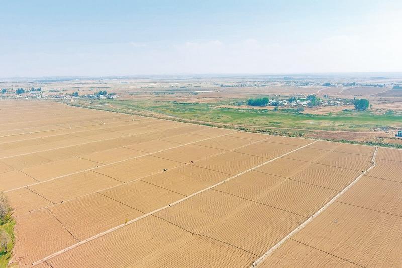 截至目前,海南區(qū)巴音陶亥鎮(zhèn)2.82萬畝農田已經種植完成95%以上,第一次澆水基本完成。(魯吟 攝)