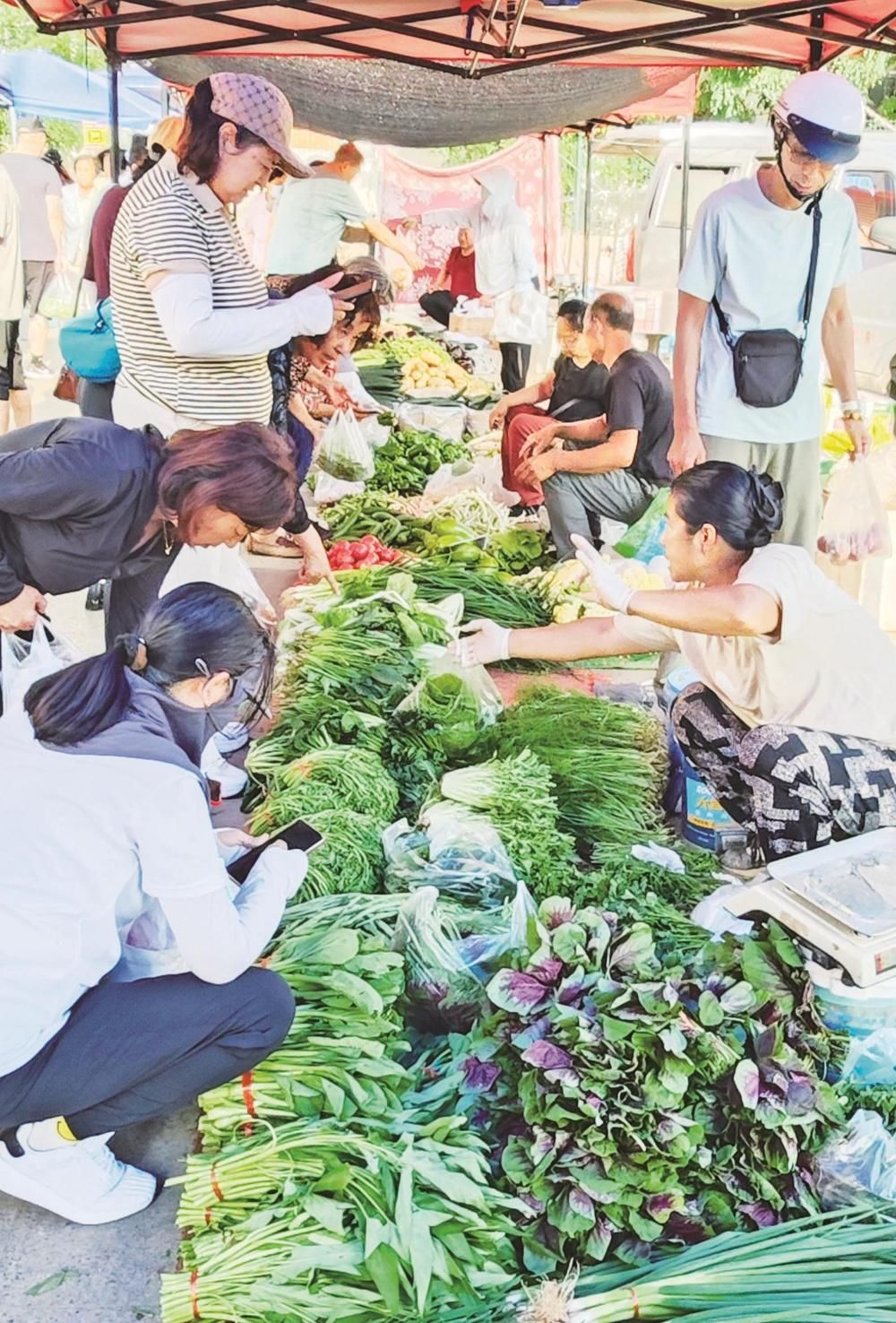 夏日的早市里,菜攤攤主牛麗梅就已經(jīng)擺放好新鮮的蔬菜,泡沫箱里的黃瓜頂著嫩黃的花,筐里的西紅柿還帶著露珠,“這些菜都是半夜起來(lái)從地里現(xiàn)摘的,你看看這黃瓜頂花帶刺的,多新鮮。我已經(jīng)在這個(gè)早市擺了十來(lái)年攤了,人們還是很認(rèn)可我家的蔬菜,就是累點(diǎn)也覺(jué)得挺高興的。”她熱情地招呼著前來(lái)買(mǎi)菜的市民,過(guò)秤、算賬,干脆利落,一看就有著豐富的賣(mài)菜經(jīng)驗(yàn)。