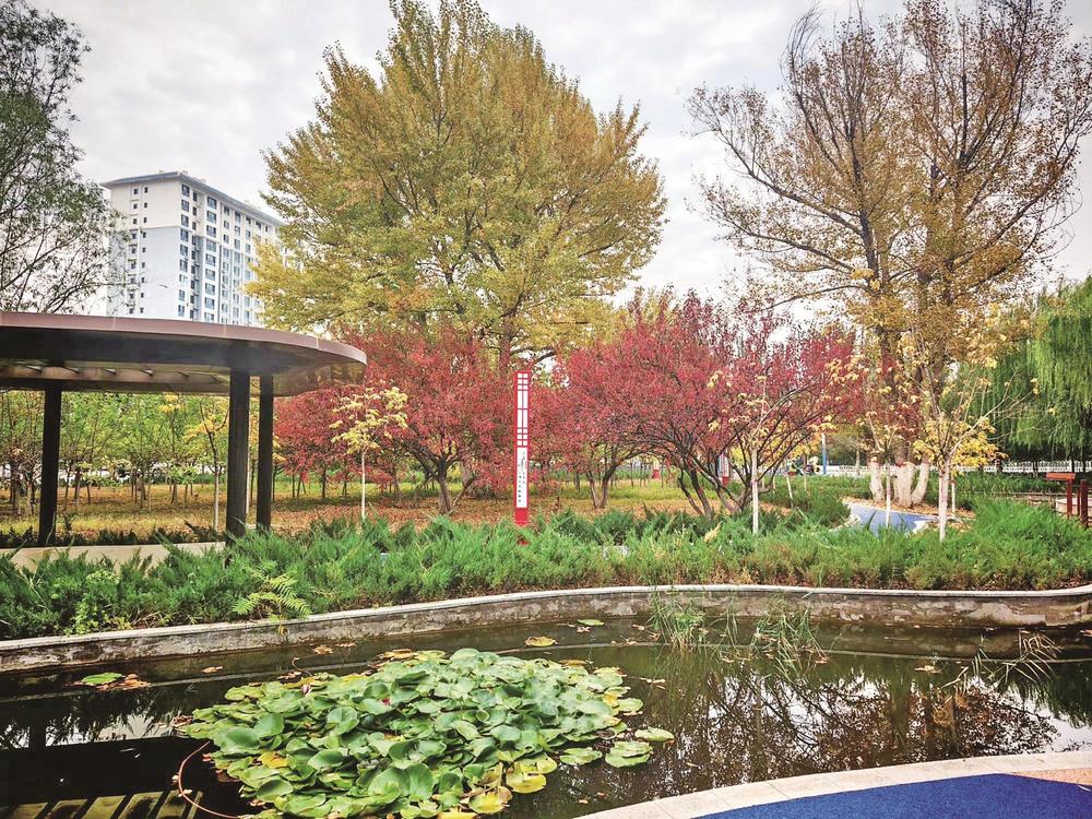 彩葉樹(shù)木與睡蓮相映成景。(丁宇婷 攝)