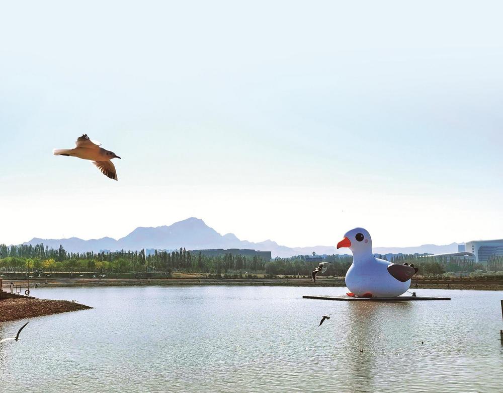 站在烏海湖畔旁,看著一片陽(yáng)光灑在波光粼粼的水面上,泛著細(xì)碎的金光。在這充滿(mǎn)詩(shī)意的秋色里,主角“紅嘴鷗”天團(tuán)準(zhǔn)時(shí)赴約。它們穿著“白衣紅鞋”,時(shí)而在波光粼粼的湖面上輕盈滑翔,時(shí)而一個(gè)猛子扎下去,精準(zhǔn)捕獲水中的美味。