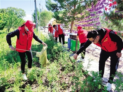 志愿者正在清理街道及綠化帶內(nèi)的垃圾。 譚艷麗 攝