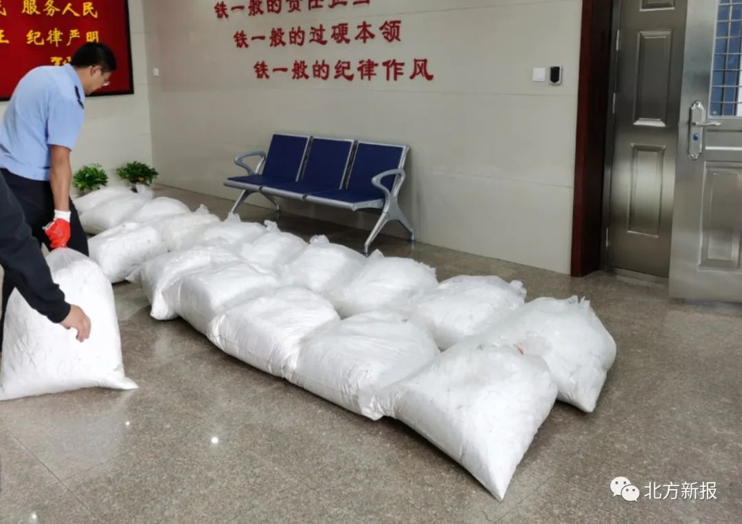 民警一路追蹤發(fā)現(xiàn),莊某駕駛的車輛未在山西省停留太久,又連夜返回包頭。有了前方的情報,專案組于9月13日凌晨5時,分為5個小組共30余警力,在黃河大橋收費(fèi)站設(shè)卡進(jìn)行堵截。民警提前封閉收費(fèi)站車道,只留一條通過,因前后均有車輛,大大降低了嫌疑人駕車沖卡風(fēng)險。清晨通行車輛本就不多,此舉并未引起嫌疑人警覺。當(dāng)嫌疑車輛進(jìn)入收費(fèi)站的閘道時,潛伏民警立即沖上去將車輛司機(jī)控制,高某還未來得及下車逃跑,母子倆雙雙落網(wǎng)。專案組民警在莊某駕駛的車輛后備箱內(nèi)現(xiàn)場查獲毒品咖啡因30編織袋共750公斤。