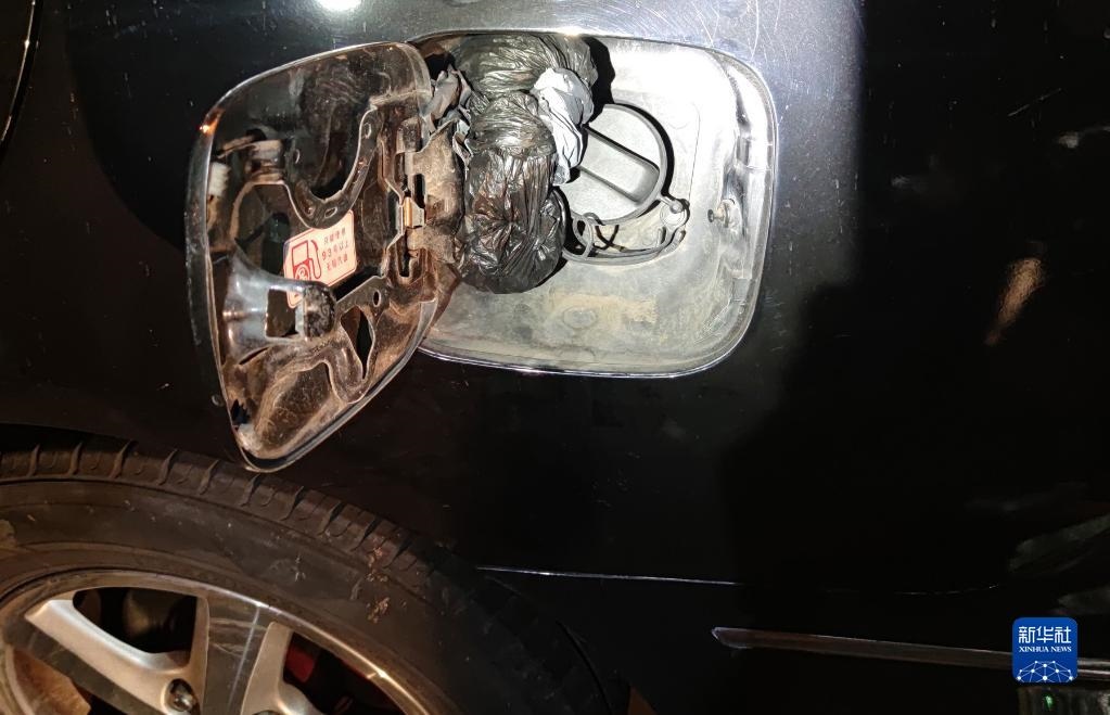 犯罪嫌疑人車輛油箱蓋里藏匿的毒品(9月10日攝)。(受訪單位提供)