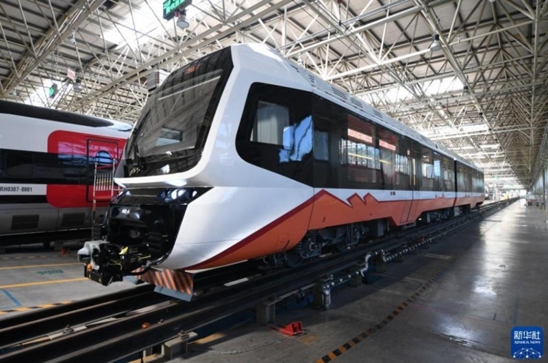 我國(guó)首列出口新能源輕軌車(chē)輛在河北唐山下線。