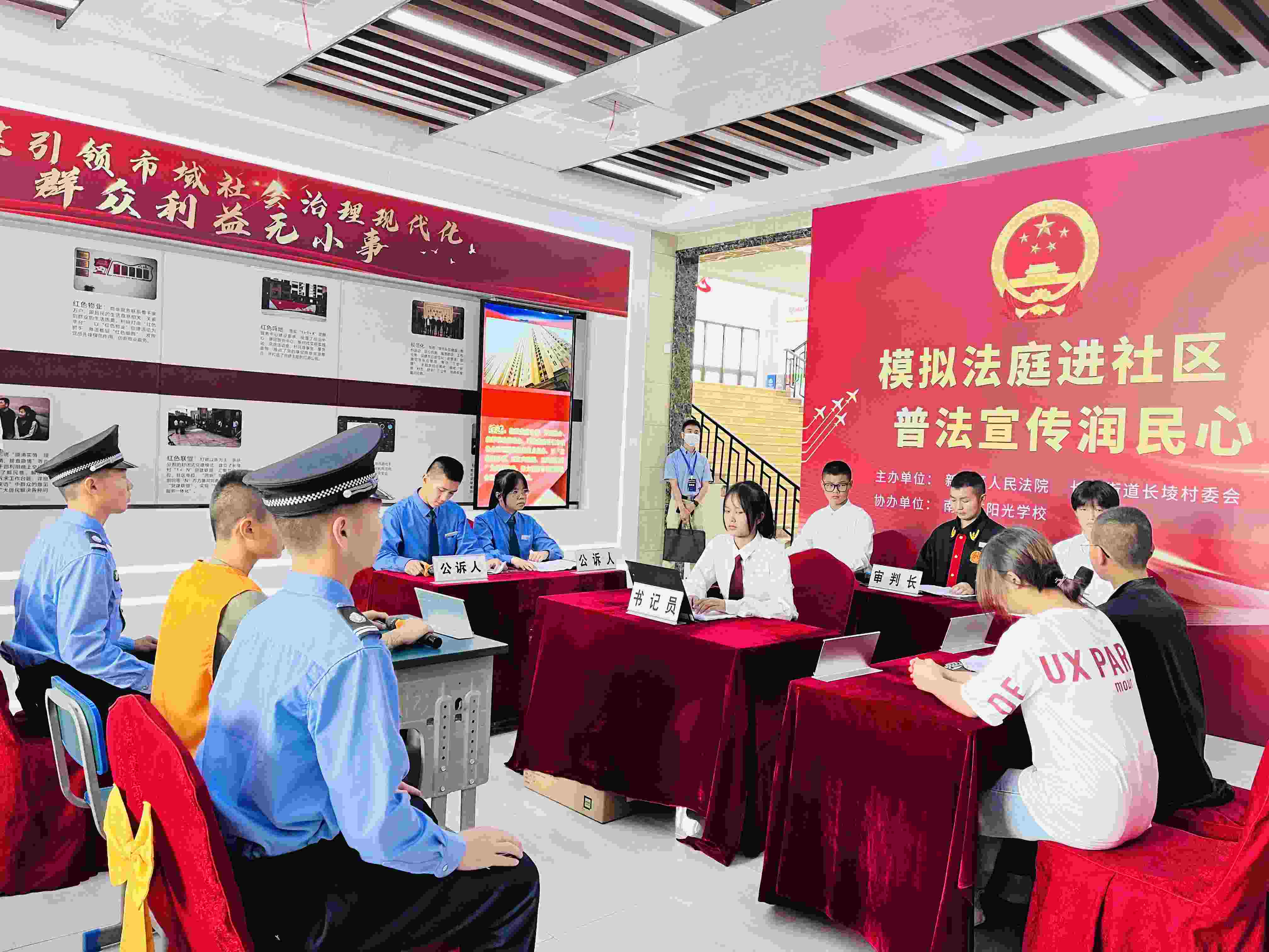 6月14日,在南昌市新建區(qū)長堎新村網(wǎng)絡(luò)普法示范基地上演了一場特殊的“模擬法庭”。法庭上的所有成員都由學(xué)生角色扮演,“今天我們的小法官、檢察官們就是來自南昌市陽光學(xué)校的孩子們”,江西省南昌市新建區(qū)法院專委郭霞介紹道。