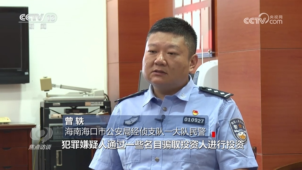 海南??谑泄簿纸?jīng)偵支隊一大隊民警曾軼:“舉報到我們海口市的金融局,由金融局牽頭海口市多個相關(guān)職能單位,包括稅務(wù)、工商、公安相關(guān)單位一起成立了聯(lián)合調(diào)查組。這個公司如果是一個正常的新能源充電樁公司,收益會源源不斷進入公司的賬戶,我們在調(diào)取相關(guān)銀行流水的過程中發(fā)現(xiàn)沒有。“
