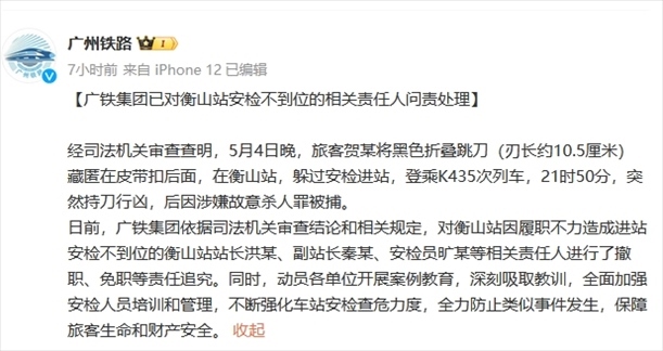 ·K435列車命案嫌犯被鑒定為精神病人,法院決定強(qiáng)制醫(yī)療。廣鐵集團(tuán):已對衡山站安檢不到位的相關(guān)責(zé)任人問責(zé)處理。