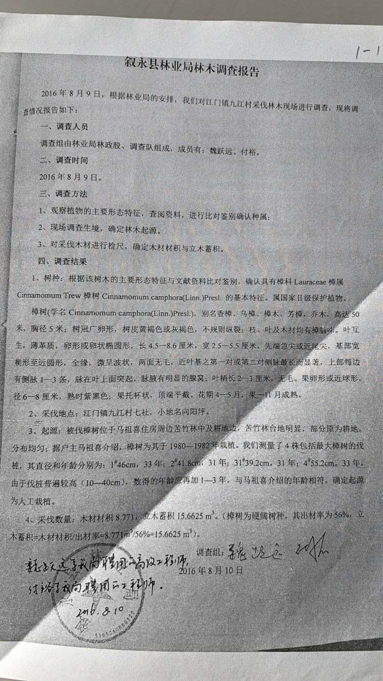 敘永縣林業(yè)局出具的報(bào)告顯示,涉案香樟樹(shù)為人工栽植。圖片來(lái)源/受訪者供圖