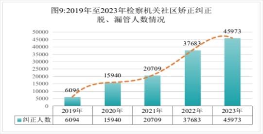 全國檢察機(jī)關(guān)共對社區(qū)矯正活動不當(dāng)向有關(guān)單位提出糾正意見130315人,同比上升27.7%;已采納130375人,采納率100%(含積存)。糾正社區(qū)矯正對象脫管、漏管45973人,同比上升22%。共開展巡回檢察3955次。通過巡回檢察發(fā)現(xiàn)問題和線索64467個,立案偵查142人,巡回檢察與檢察偵查工作協(xié)同推進(jìn)。