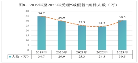最高檢積極推動《關(guān)于依法推進(jìn)假釋制度適用的指導(dǎo)意見》《關(guān)于進(jìn)一步規(guī)范暫予監(jiān)外執(zhí)行工作的意見》落地落實(shí),全國檢察機(jī)關(guān)共受理審查“減假暫”案件304522人,同比上升25.2%。