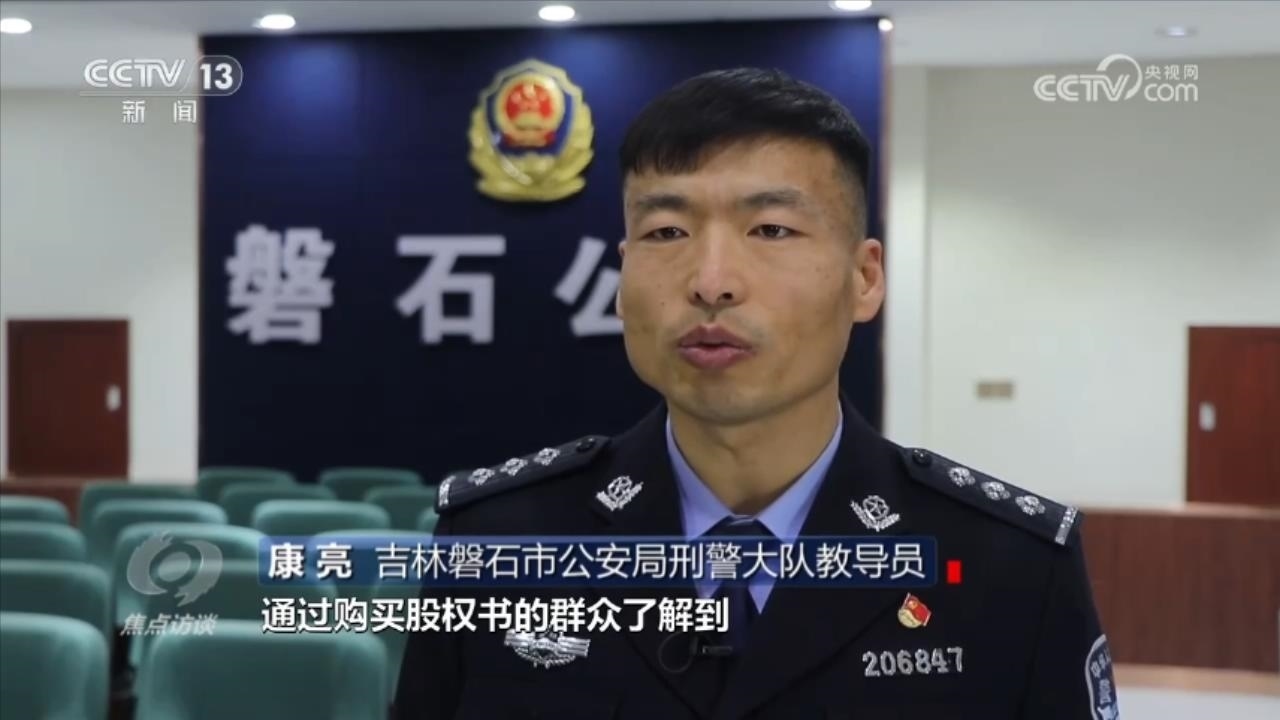 吉林磐石市公安局刑警大隊教導(dǎo)員康亮介紹,通過購買股權(quán)書的群眾了解到,這是一個投資29.9元就能獲得110萬元回報的項目。