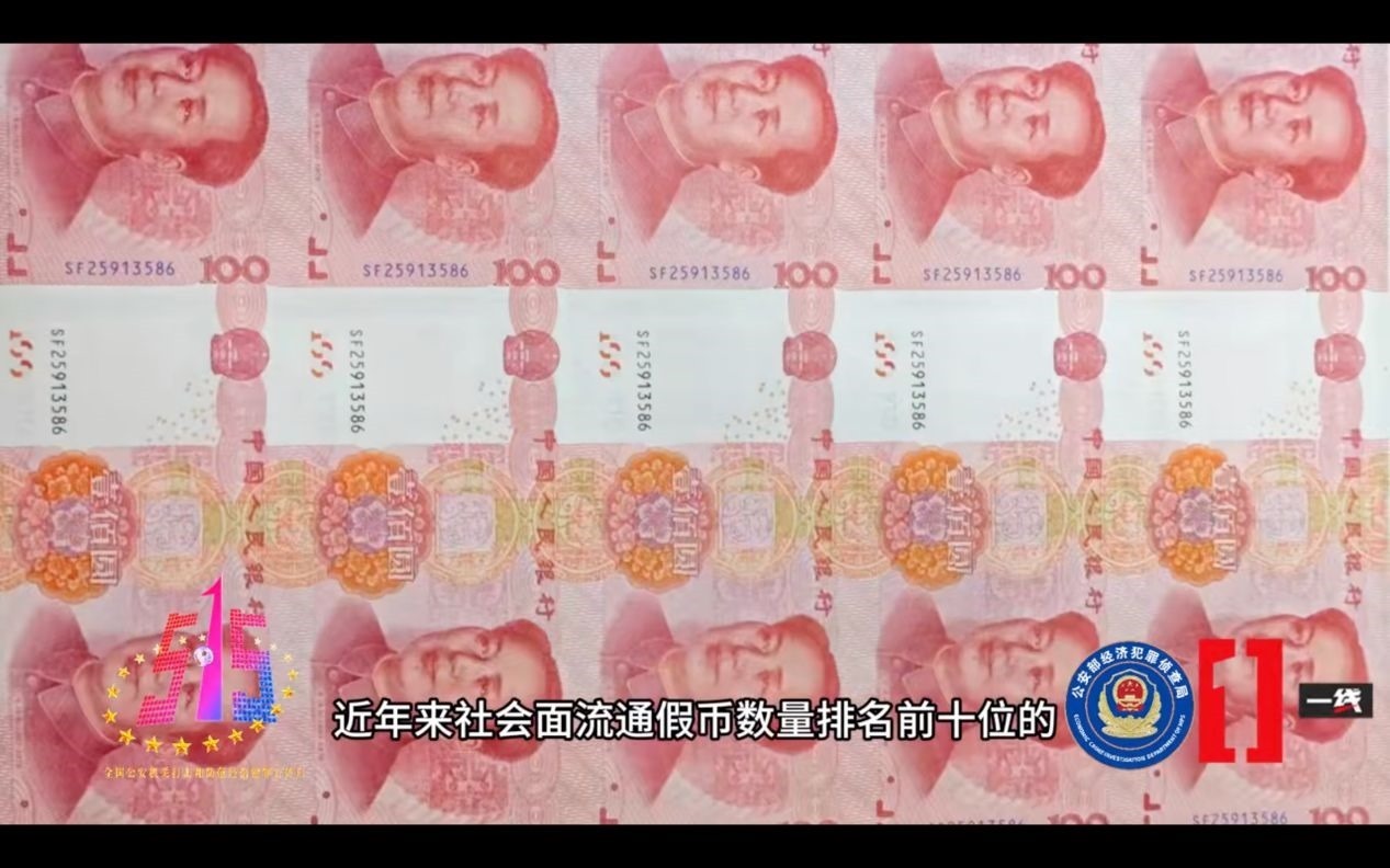 央視報道的2023年度打擊經(jīng)濟犯罪十大典型案例中,關(guān)于該案涉及假幣的相關(guān)畫面。