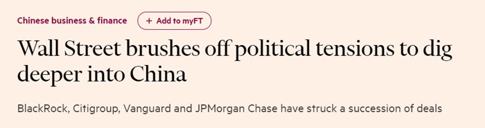 “華爾街部分實(shí)力最雄厚的金融機(jī)構(gòu)正在加緊布局中國的基金管理業(yè)等金融服務(wù)業(yè),以期獲利于中國走向開放的資本市場?!?/p>
