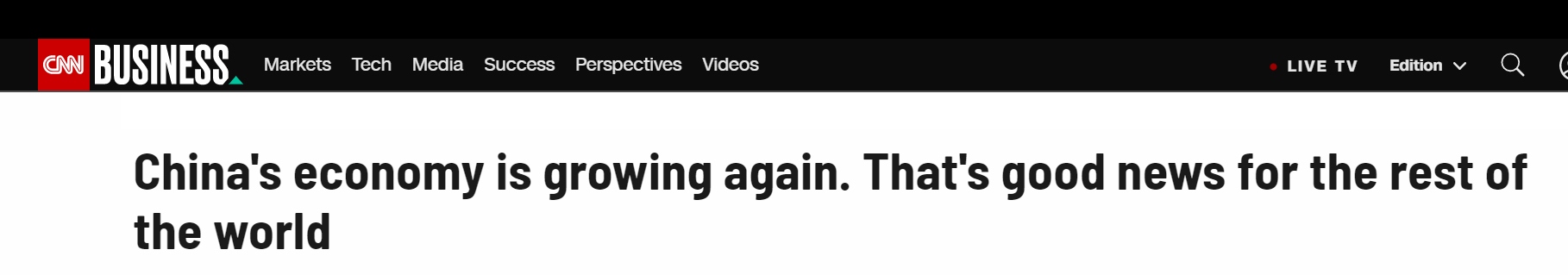 16日,中國GDP由負(fù)轉(zhuǎn)正的數(shù)字一經(jīng)公布,美國有線電視新聞網(wǎng)(CNN)即發(fā)表題為《中國經(jīng)濟(jì)恢復(fù)增長是全世界的好消息》的文章。文章認(rèn)為,3.2%的增長意味著中國扭轉(zhuǎn)了經(jīng)濟(jì)衰退局面。作為世界上第一個(gè)采取嚴(yán)格措施防控疫情的國家,中國的較早恢復(fù)經(jīng)濟(jì)增長,對(duì)其他國家是個(gè)好兆頭。