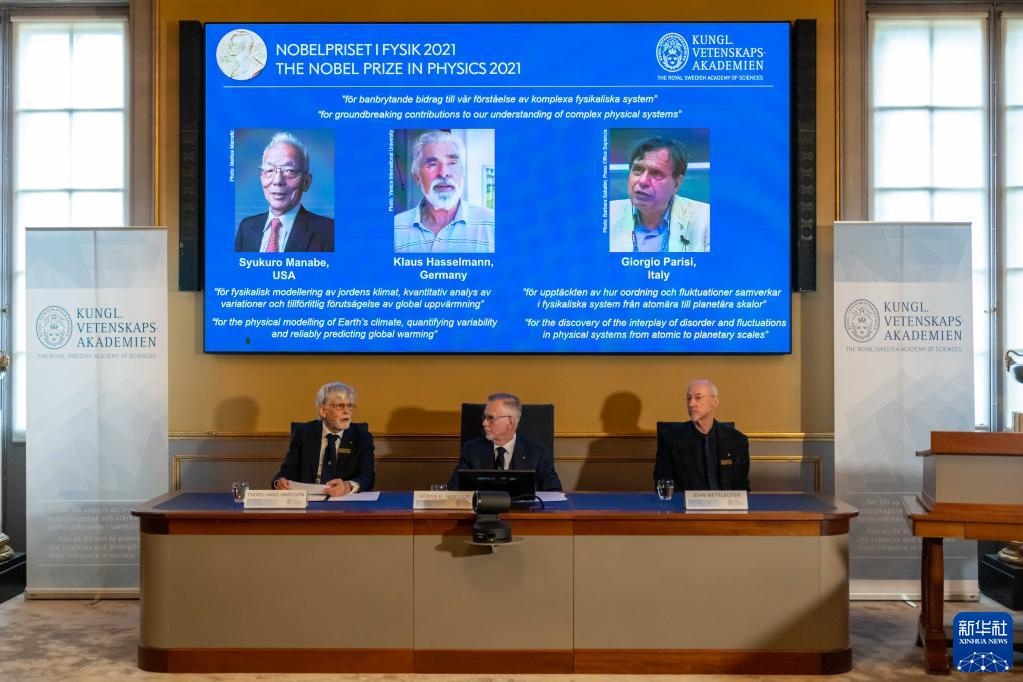 新華社斯德哥爾摩10月5日電(記者和苗 付一鳴)瑞典皇家科學院5日宣布,將2021年諾貝爾物理學獎授予三名科學家,其中,日裔美籍科學家真鍋淑郎和德國科學家克勞斯·哈塞爾曼因“建立地球氣候的物理模型、量化其可變性并可靠地預測全球變暖”的相關研究獲獎,意大利科學家喬治·帕里西因“發(fā)現(xiàn)了從原子到行星尺度的物理系統(tǒng)中無序和波動的相互作用”而獲獎?! ?br/>